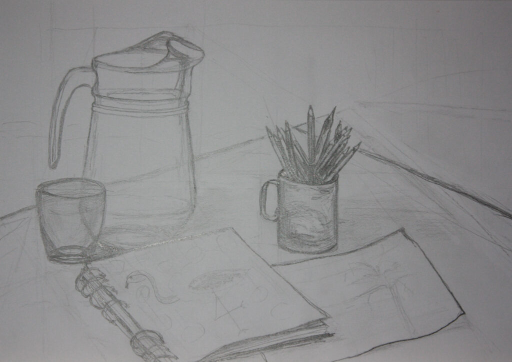 Arbeitsplatz mit Krug
