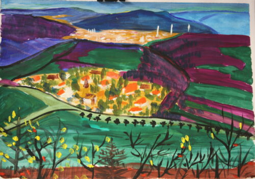 Blick auf Zeigerheim Studie 19. Dezember 2020 20. Oktober 2021Abstraktes, Gouache, Landschaften Bild Details