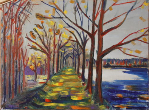 Kleine Baumallee am Teich abstrakter 6. September 2023 4. Februar 2024Abstraktes, Landschaften, Öl 30 x 40 Bild Details