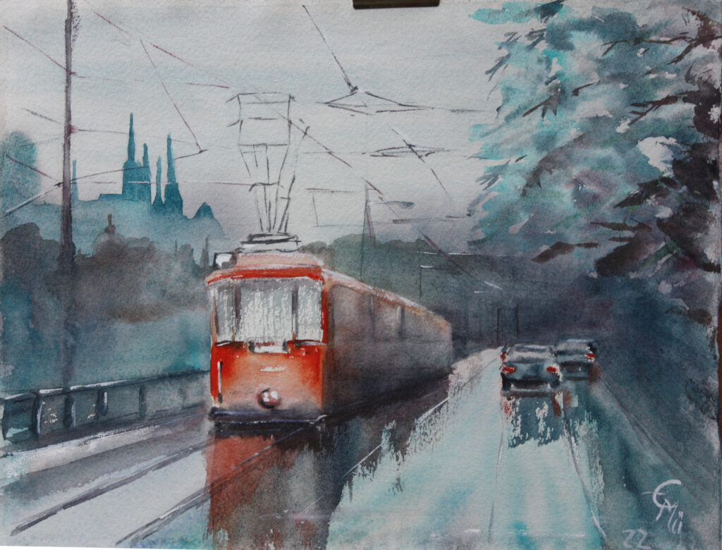 Straßenbahn im Regen